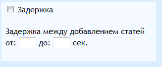 в котором есть возможность установить время задержки между постингом статей на сайт..... выбор как бы есть, а вот функции такой нет,еще,не в силах я написать такое,помогите люди добрые